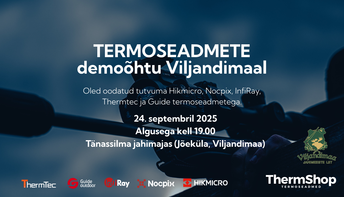Koostöös Viljandimaa Jahimeeste Liiduga ootame kõiki huvilisi 24. septembril alates kell 19.00 Tänassilma jahimajja (Jõeküla, Viljandimaa) termoseadmete demoõhtule. Üritus pakub suurepärast võimalust tutvuda uusimate ja tipptasemel termoseadmetega otse tunnustatud tootjatelt. Kohal on oma ala kogenud spetsialistid, kes jagavad põhjalikke teadmisi, selgitavad seadmete tööpõhimõtteid ja annavad nõu nende kasutamiseks nii jahil kui ka looduses liikudes. See […]
