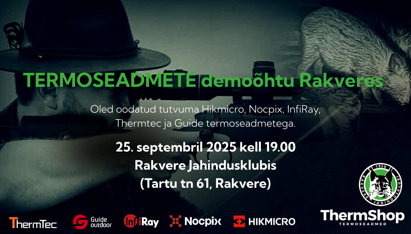Koostöös Rakvere Jahindusklubiga ootame kõiki huvilisi 25. septembril alates kell 19.00 Rakvere Jahindusklubisse (Tartu tn 61, Rakvere) termoseadmete demoõhtule.