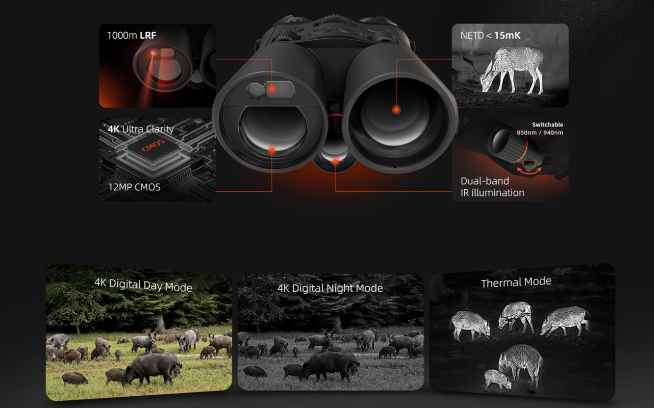 Thermtec Ventus 650L on varustatud suure tundlikkusega termilise sensoriga (NETD 15 mK), mis on ühendatud 12-megapikslise CMOS-sensoriga ning lülitatava 850 nm ja 940 nm IR-valgustusega, tagades usaldusväärse pildistamise nii päeval kui öösel. ThermTec AI kalibreerimine parandab pildi teravust ja stabiilsust, võimaldades sujuvat vaatamist muutuvates keskkondades. Tasakaalustatud suurendus ja kuni 2600 m tuvastuskaugus võimaldavad tõhusat sihtmärgi skanneerimist, samal ajal kui intuitiivne režiimide vahetus ja ergonoomiline disain tagavad stabiilse ja mugava vaatlemise pikaajalise kasutuse korral.