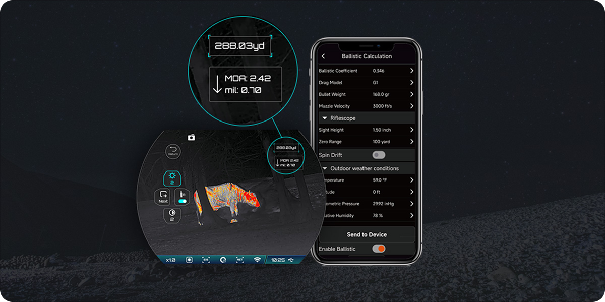 Titan on RIX-i esimene termiline kaugusmõõtjaga monokkel, millel on tasuta integreeritud ballistiline kalkulaator, muutes selle võimsaks vaatlus- ja abivahendiks pikamaa laskmisel. RIX+ rakenduse abil saab eelnevalt sisestada keskkonnategurid ja relva parameetrid. Kui kaugusmõõtja mõõdab distantsi, arvutab Titan automaatselt ballistilise kõrvalekalde ning kuvab selle mõõdetud vahemaa all. Isegi kui sa ei kasuta RIX-i sihikut, aitab Titan saavutada suuremat lasutäpsust, kui tead oma relva MOA- ja mil-väärtusi.